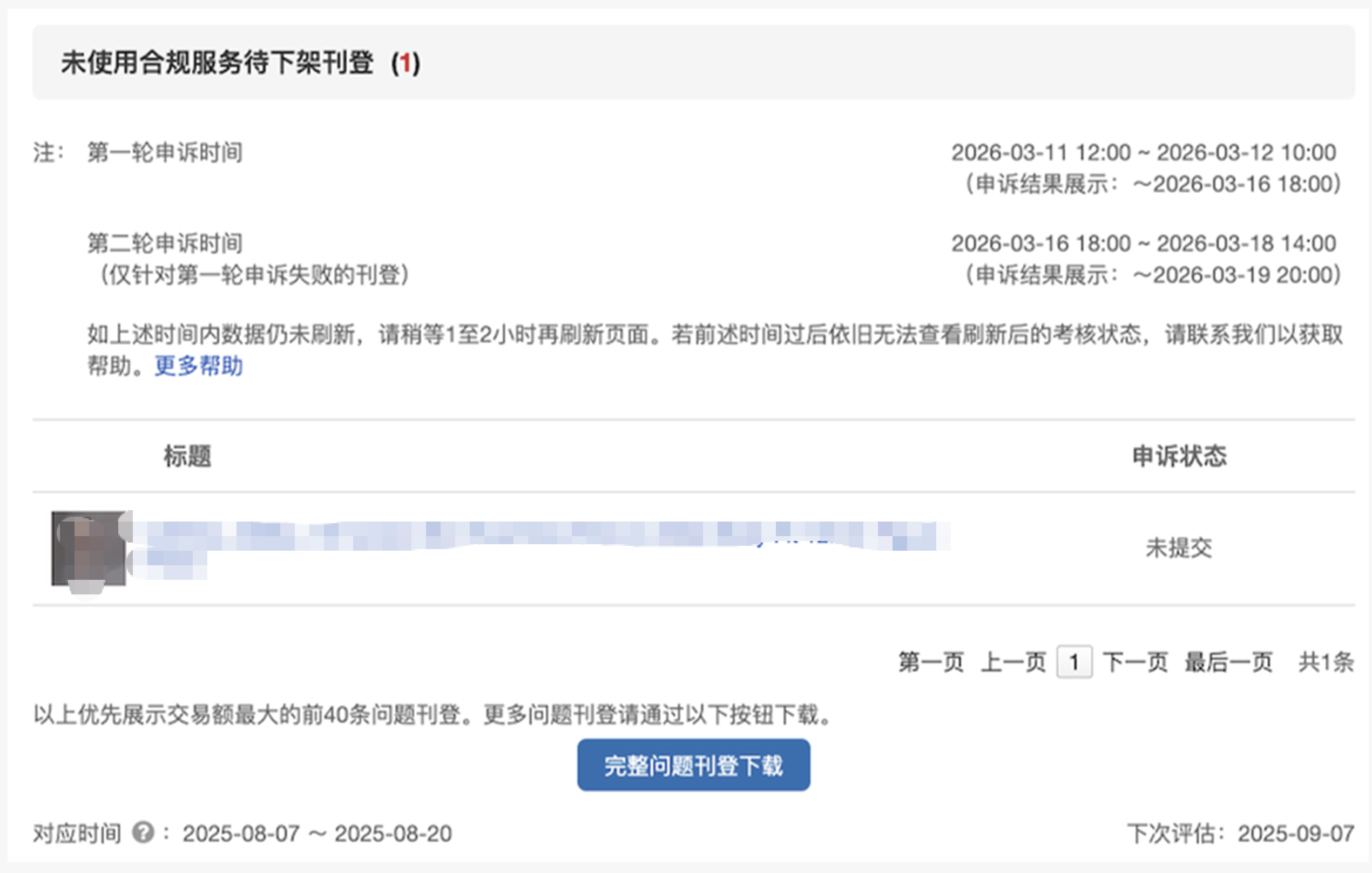 发布时间:2025-10-15 最近刷新时间:2026-03-27本接口对应“政策表现”> “直邮服务标准” >“未使用合规服务待下架刊登” 中的数据。 卖家中心相关界面供参考: