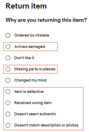需要注意的是,但凡是因为SNAD中的描述与实际不符原因的退货,卖家都必须退全款给到买家(包括物流费),同时还需要承担买家退回产品的运费。