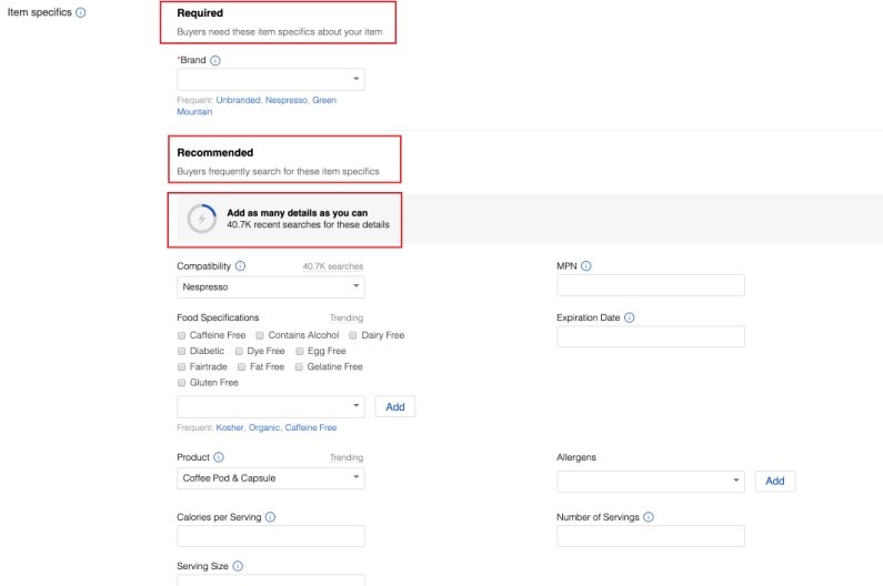 当卖家创建新的刊登或修改现有刊登时,卖家将可以在seller center找到eBay必须填写和推荐填写哪些物品属性。除了必须填写的物品属性外,eBay还建议卖家通过选择“添加您自己的物品属性”选项,尽可能多填写eBay建议的物品属性。此外,eBay也正在与第三方工具提供商合作,以审核他们在其工具中为相关物品属性(包括必须填写的物品属性)提供了多少曝光率。